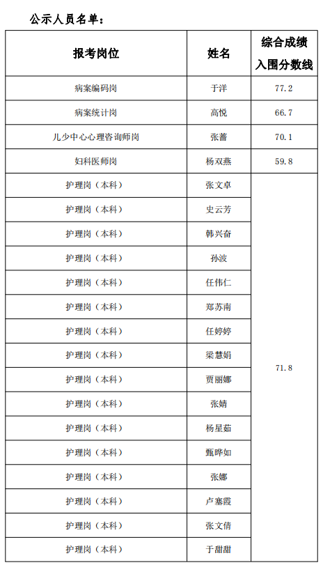 內(nèi)蒙古自治區(qū)第三醫(yī)院(精神衛(wèi)生中心)2021年度公開招聘合同制工作人員考試進入體檢和考察范圍人員公示