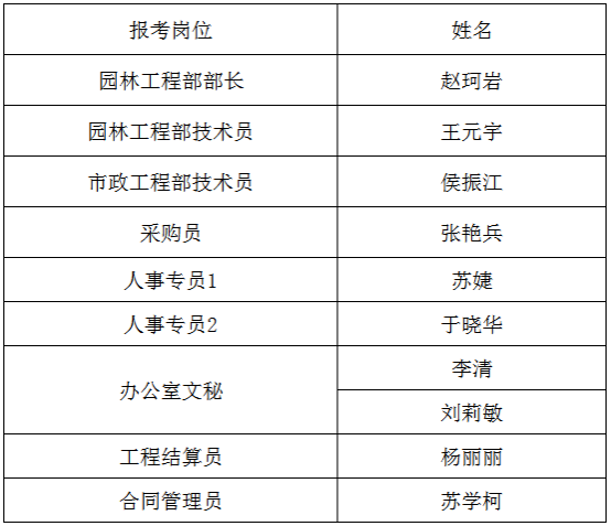 根據(jù)《呼和浩特市玉錦城鄉(xiāng)建設(shè)發(fā)展有限公司公開(kāi)招聘簡(jiǎn)章》有關(guān)規(guī)定和要求,經(jīng)報(bào)名、筆試、資格復(fù)審、面試、體檢等程序,現(xiàn)將呼和浩特市玉錦城鄉(xiāng)建設(shè)發(fā)展有限公司公開(kāi)招聘考試擬聘用人員名單進(jìn)行公示。