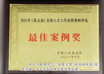 市人才服務中心《“數(shù)聚才智”的濟南探索》榮獲全國人才工作創(chuàng)新案例最佳案例獎。