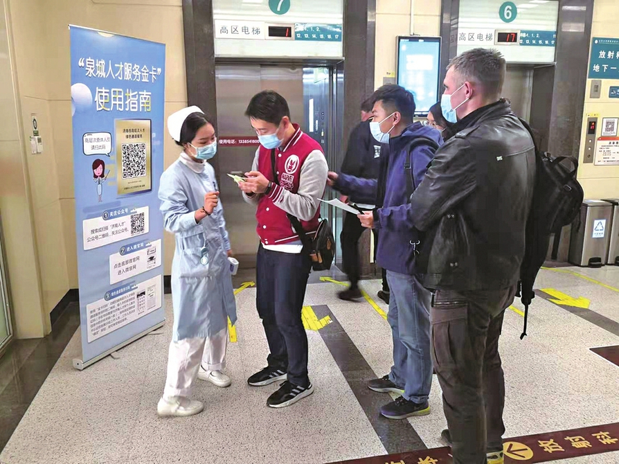 高層次人才通過泉城人才服務金卡掃碼享受綠色通道服務。